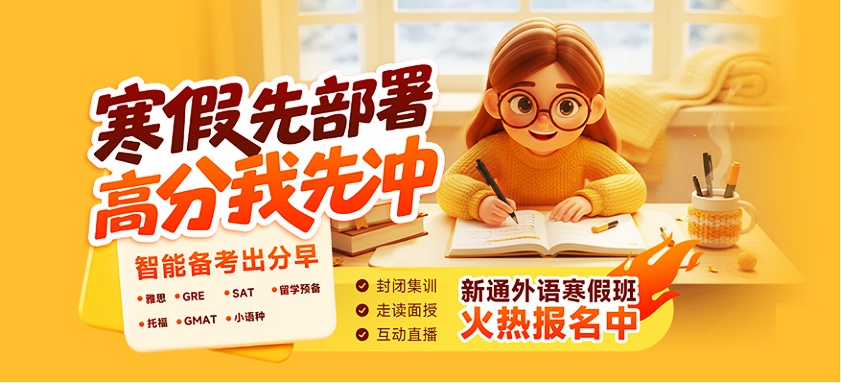 新通雅思寒假班是一个针对寒假期间集中备考雅思的课程,适合寒假时间紧凑,适合进行高强度、集中性的学习,进步雅思成绩。开设雅思寒假基础班、雅思寒假强化班、雅思寒假考前冲刺、雅思集训营、雅思个性定制一对一VIP班等等,聘请雅思教育现场授课,专职班主任全面督学,大密度突击基础真题讲练结合,帮助学员强化雅思听力、阅读、口语及写作模块,取得理想的雅思考试分数。